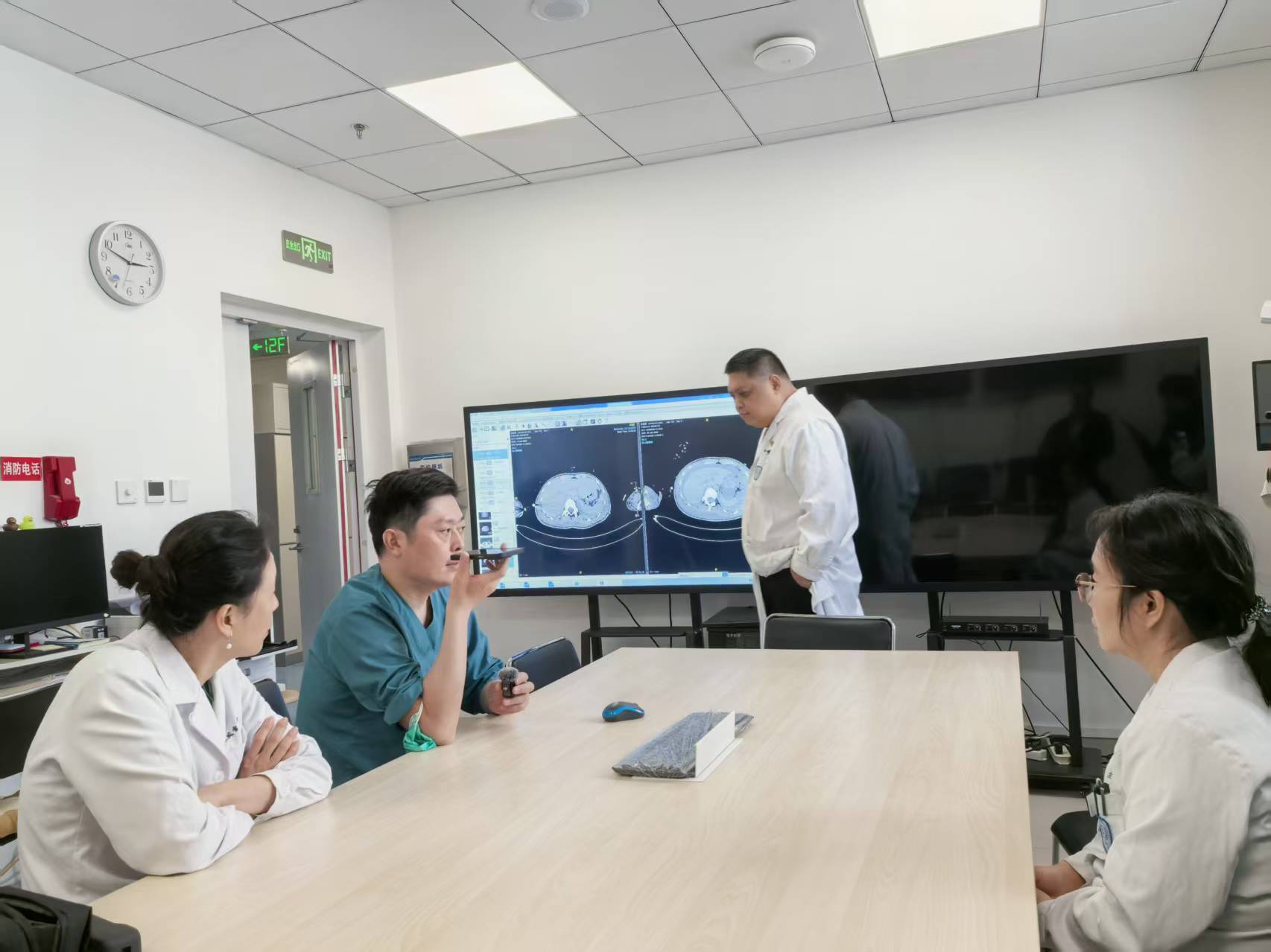 会议室内,CT影像清晰地投射在屏幕上。来自不同科室的专家们围坐在桌前,仔细听取放射影像解读。大家争分夺秒,敲定下一步治疗细节,只为给这个年轻的生命创造更多机会。