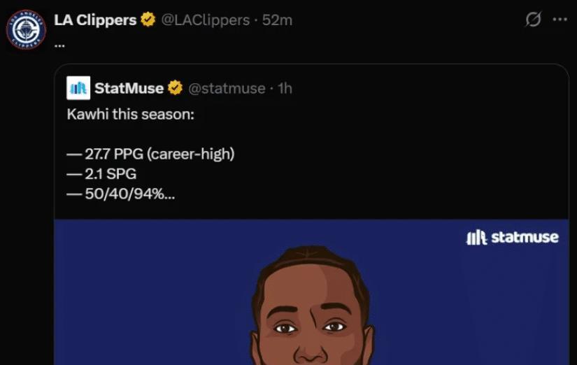 此前快船官方都用了三个...省略号来为小卡鸣不平,毕竟全明星替补是教练员选出来的,这说明小卡不受待见。